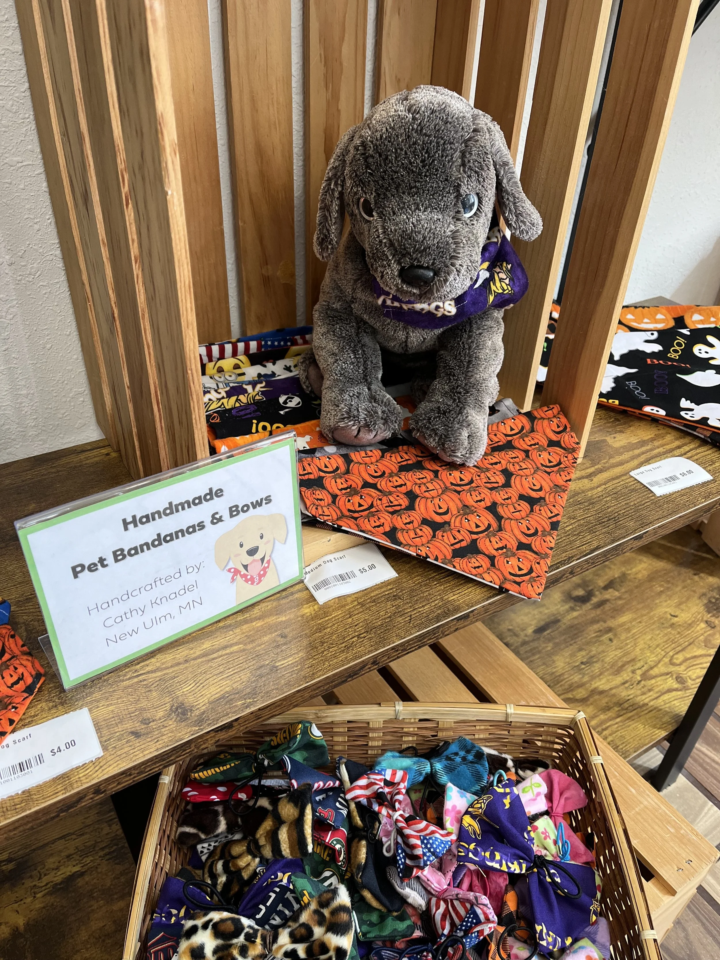 Pet Bandanas & Bows: Handmade by Cathy Knadel of New Ulm. Available in different sizes and patterns - including Halloween and Minnesota Vikings!